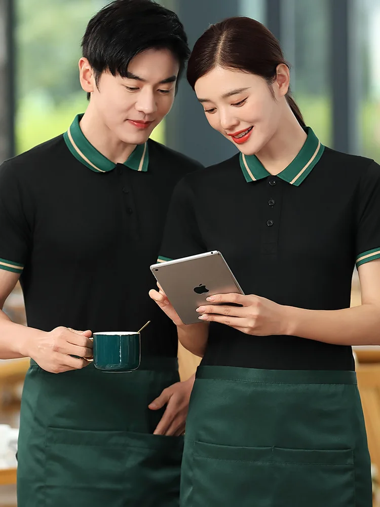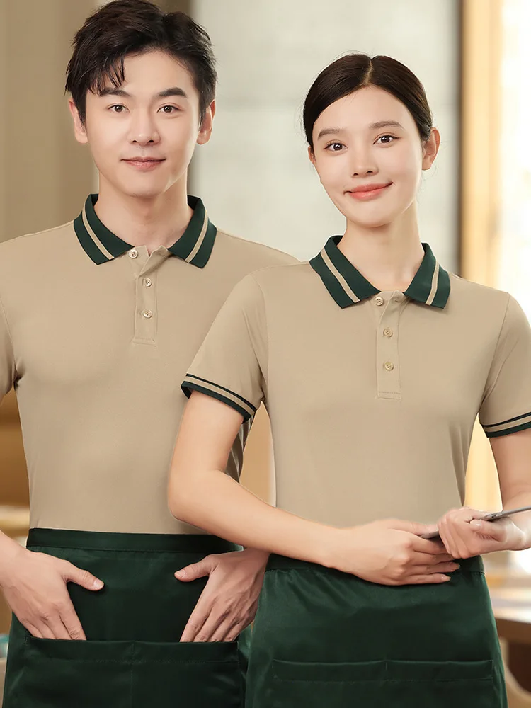 Catering Polo Shirt Summer Short-sleeved Ice Silk T-Shirt Lapel Canvas Embroidery Print Logo for Kitchen Workers Group Sets